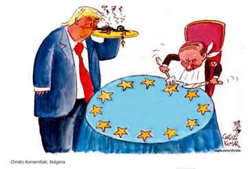 پوتین و ترامپ بر سفره اروپا نشسته و در حال بلعیدنند