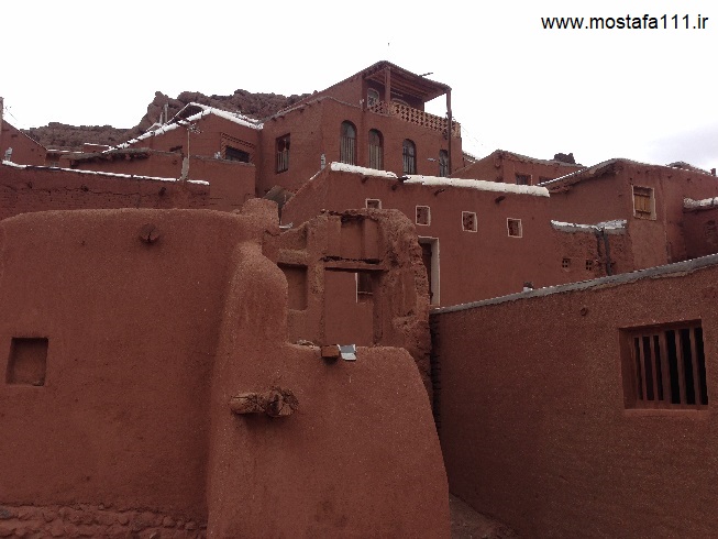 ولی اینجا در ابیانه با گِل سُرخ که معدنش در نزدیکی همان روستاست، دیوارهای شان را سرخ می کنند، آنچه بین مردم حاشیه نشین اطراف جی و مردم حاشیه نشین شهر صد دروازه در ایالت قومس مشترک است، و به رسوم ایرانیان باستان باز می گردد، تزیین خانه ها با همین خاک نرم و گِلی صاف و صیقلی بود، که متناسب با وجود معادن گِل رس، که در نقاط مختلف ایران، رنگی خاص خود را دارند، خانه ها به همان رنگ در آمدند؛ و اگرچه از لحاظ رنگ، خانه های مردم مناطق مختلف ایران متفاوت بودند، اما در این رسم زیبا، اشتراک داشتند، در استفاده از مصالح و تزیین مشترک بودند، ایرانیان خانه های خود را ابتدا با خشت و گِل می ساختند، و بعد برای افزایش دوام و بقایش، آنرا با کاهگل عایق بندی می کردند، و از کاهگِل (مخلوط گل رس و کاه حاصل از خرمنکوبی گندم و جو خود) برای پوشش آن استفاده می کردند، که این امر باعث می شد، بارش باران نتواند سازه اصلی خشت و گلی را شسته و بدان صدمه زده و با خود ببرد؛