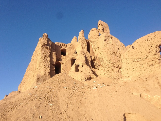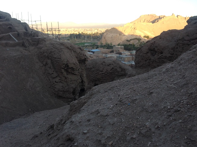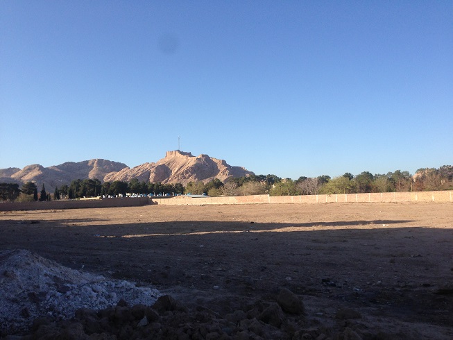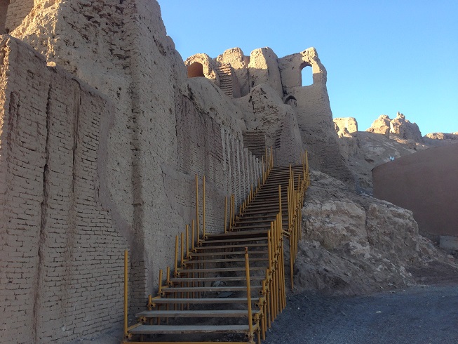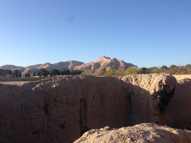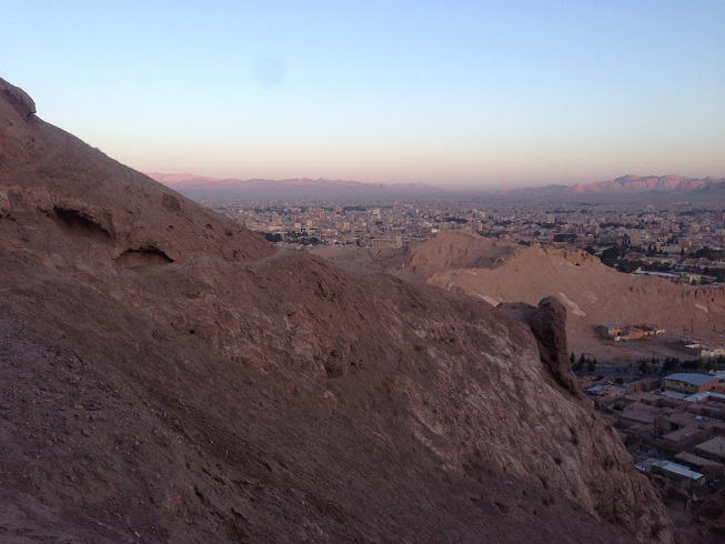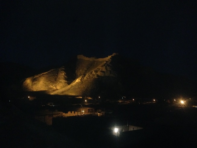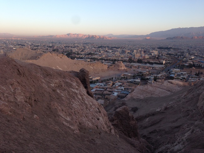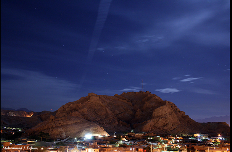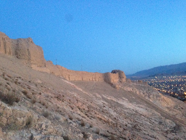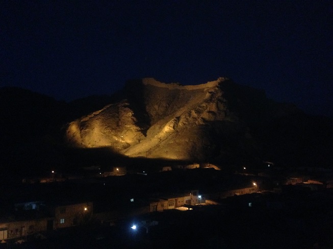 طبق معمول این چند روزه ی سفر، که به خود قول دادم، که ورزش صبحگاهی را ترک نکنم، امروز هم در ساعات پایان سال 1396 بعد از نماز صبح، که تازه دقایقی از 5 صبح گذشته بود، اقامتگاه (خیابان سجادیه) را به قصد ورزش ترک کردم، نورپردازی هایی بر دامنه کوه های نزدیک محل اقامت مان، مرا به خود می خواند تا امروز ورزش دویدن و پیاده روی را که ورزش این چند روزه ام در کاشان و یزد بود، را کنار گذاشته، به کوهنوردی روی بیاورم، نورپردازی ها نشان از وجود یک بنای تاریخی مهم بر دامنه این کوه دارد. بله قلعه دختر و یا قلعه اردشیر که متعلق به دوران ساسانی است.