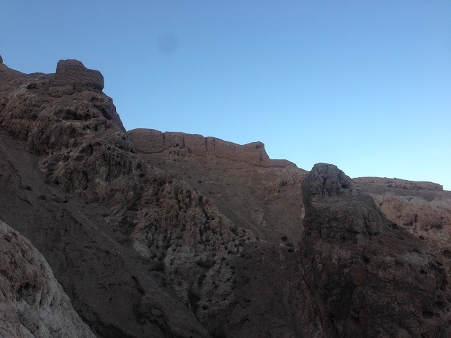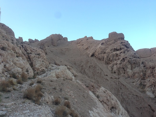 صخره های سنگ آهکی و محکم دامنه را به قصد صعود به این ارتفاع، که از پای قله حدود سیصد، چهارصد متر ارتفاع دارد، هدف گرفته و شروع به صعود کردم، تنها هستم و کسی مرا همراهی نمی کند، اینجا عرصه سگ های نگهبان است، و بر آمدن من هم سگی به اعتراض واق واق [1]، و چند تایی هم در دور دست ها او را در این ماموریت همراهی و هم دلی می کنند. اینها به حقیقت مزاحم کسانی بودند که در روزگار رونق این قلعه تاریخی، قصد حمله شبانه به آن را داشتند، و این سرو صدای آنها، هر نگاهبان ناهوشیاری را در برج و دیوارهای قلعه به هوش می آورد، و آدرس متجاوزین را به مامورین حافظ قلعه می داد.