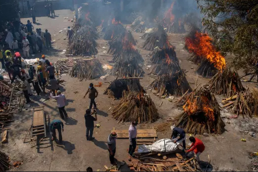 مرده سوزانی بیماران فوت شده در سونامی کرونا در هند