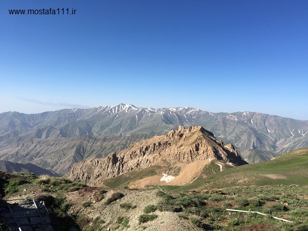 دره شهرستانک بر پای سیچال و کوه های سر به فلک کشیده برفی اعلم کوه و کهار ناز در دور دست