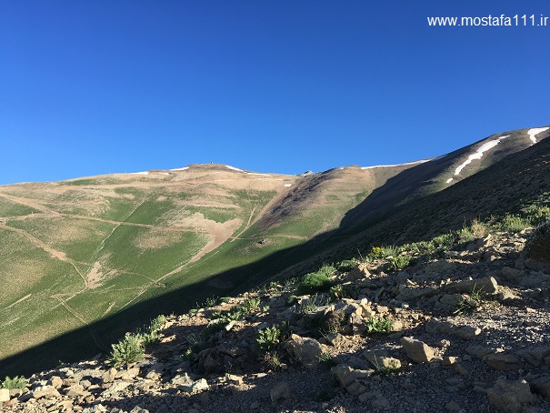 حدود نیم ساعت در جانپناه شیرپلا استراحت کردیم و سپس حرکت، هفت نفری در مسیر شیرپلا تا سنگ سیاه و جانپناه امیری از ما جلوتر بودند، و یا از ما پیشی گرفتند، اکثرا نزدیک به ساعت 5 صبح حرکت کرده بودند و با این حال از ما پیش بودند. گویا صعود کنندگان امروز سه شنبه 18 خرداد، بیشتر قهرمانان سرعتند، نادر افرادی مثل خود ما، کندرو یافتیم، که در مسیر از کسی پیشی نگرفته بودیم.