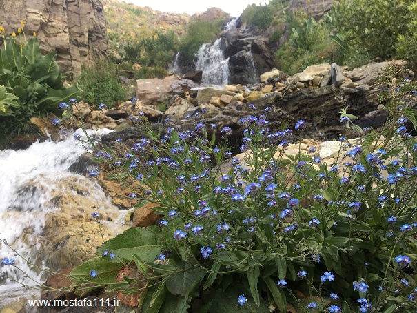گل های به بار نشسته در کنار آبشارها