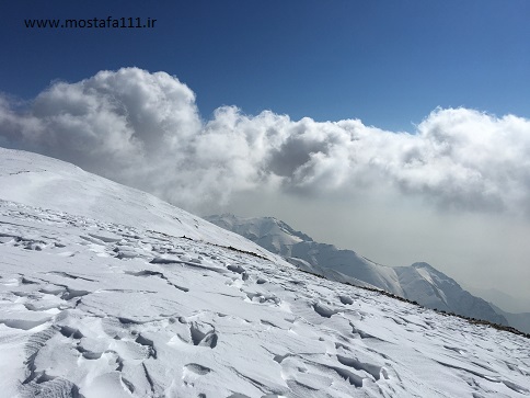 برفراز قله توچال با ابرهایی که آن را فرا گرفته اند