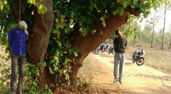 این صحنه و تصویر بعدی آن مربوط به جنایت یک گروه 5 نفره هندوی افراطی در تاریخ 20 مارس 2016 است که آقای مظلوم انصاری راننده 32 ساله و شاگرد نوجوان 13 ساله اش به نام امتیاز خان را به جرم حمل و نقل گاو که مطابق ارزش های مذهبی آنان منکر تلقی می شود را در ایالت جارکند هند بعد از ضرب و شتم با طناب به دار آویختند