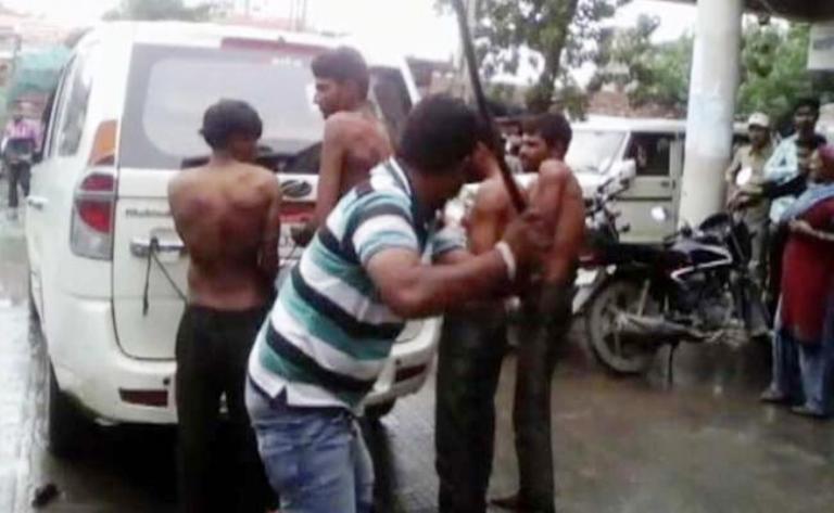 این چهار جوان لخت که در تصویر دیده می شوند از دالیت ها هستند که در تاریخ 11 جولای 2016 به جرم پوست کندن یک گاو کشته شده توسط یک شیر، توسط گروه های خودسر هندو دستگیر و پشت یک اتومبیل بسته بعد از اهانت و ضرب و شتم شدید در شهر اونا ایالت گجرات گردانده شدند.