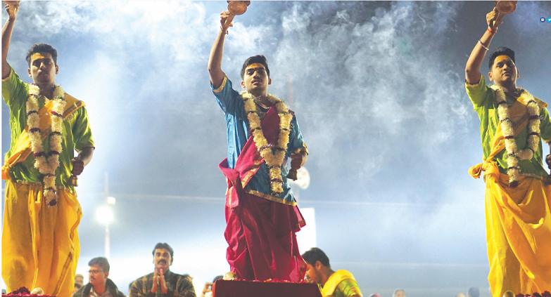 ایستاده به انتظار طلوع خورشید بر گنگ مقدس