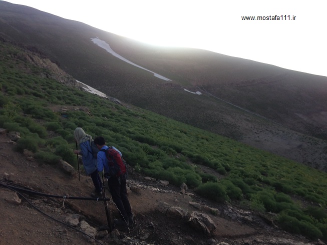 آب های چشمه نرگس و چشمه مرشد، صدای آهنگین خود را به کوهنوردان در حال حرکت در یال هدیه می کنند، تا در این لحظات پایان صعود آنان را همراهی نمایند؛ و این جمله انسانی و عارفانه شیخ ابوالحسن خرقانی، هم به زیبایی این آواز آب مزید شد، و انرژی رونده ایی را که ما را به قله می برد، به رغم این شب دهشتناک گذشته، و استراحت و خوابی که، نداشتیم، برای ما انرژی حرکت بود، و همچنان با ما همراه و همیار، تا در این صعود زیبا کمکیارمان باشد.