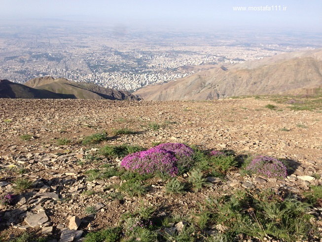 گل های بنفش در قله لزون و تصویر تهران