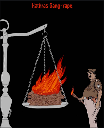 تا این جا ممکن است چنین حوادثی برای هر جامعه ایی رخ دهد و... اما مطلب وقتی بغرنج می شود که سیستم حاکمیت دولت ایالتی اتارپرادش (محل وقوع جرم) که اکنون در دست یک روحانی مذهبی [5] هندو وابسته به حزب افراط گرای هندو BJP قرار دارد، حتی در ده روز اولیه وقوع این جنایت، تمام دادخواهی های این خانواده مظلوم را نادیده گرفته، و حتی از دستگیری جنایتکاران نیز خودداری می کند، و با مرگ این قربانیِ نیز، پلیس ایالتی جسد او را به زور تحت اختیار خود گرفته، و بدون اجازه خانواده اش، و بدون انجام تشریفات دفن و کفن در فرهنگ هندو، در ساعت 2 و 40 دقیقه پس از نیمه شب، این سند جنایت را سوزانده، [6] و اکنون روندی را از کتمان تجاوز و قتل، در محاکم قضایی و پلیس شروع کرده اند.