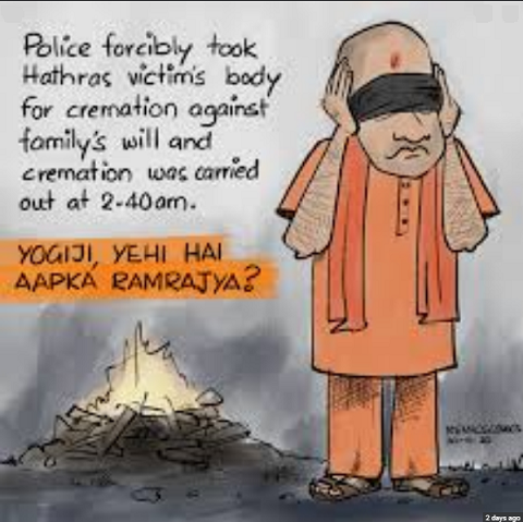 چشم و گوش بستن سروزیر ایالت اتارپرادش هند بر جنایت در حالی که پلیس تحت امر او جسد این قربانی را ساعت 2 و 40 دقیقه صبح سوزاندند