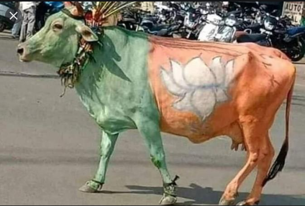 گاو مقدس با نقش و نگار پرچم حزب BJP