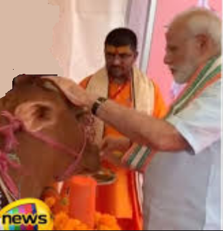 ادای احترام نارندرا مودی نخست وزیر هند به گاو مقدس