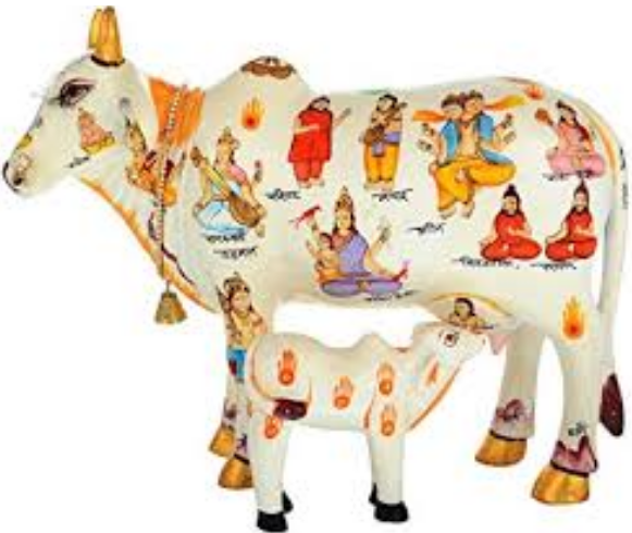 گاو و گوساله مقدس - با نقش های اساطیری هندو بر بدنش