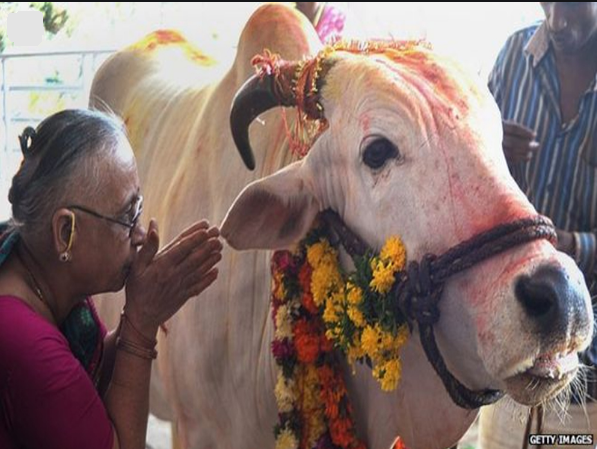 ادای احترام یک هندوی معتقد به گاو مقدس - احساسات پاک مذهبی
