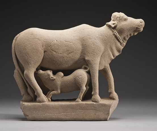 مجسمه گاو و گوساله مربوط به قرن هفتم میلادی یافته شده در ایالت اتارپرادش