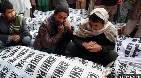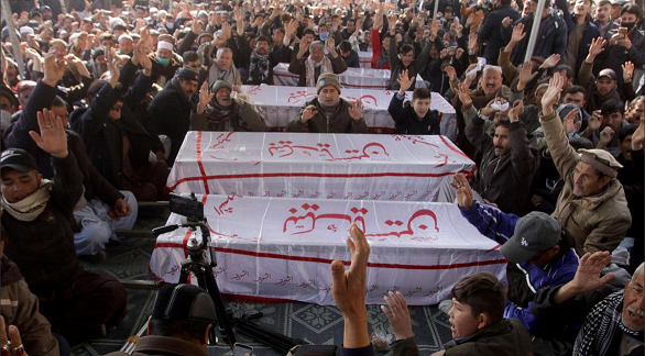 اجساد معدن چیان شهید هزاره بر اتوبانی در کویته پاکستان به نشانه اعتراض