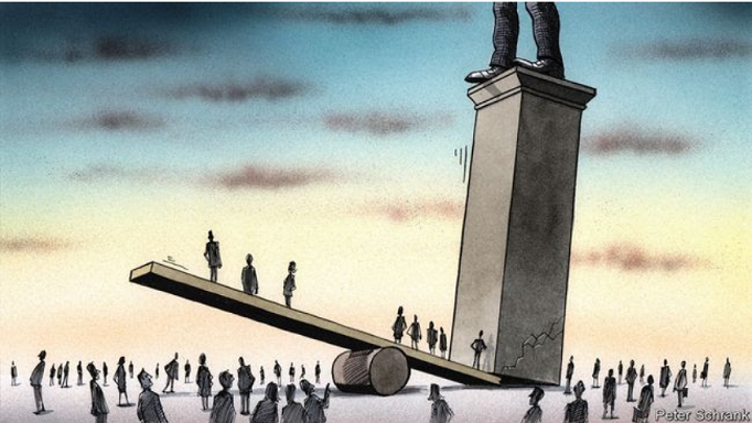 گروه هایی مختلف انسانی که مشت می شوند و مستبدی را به نفع دیگری می کوبند تا دور باطل استبداد برقرار بماند