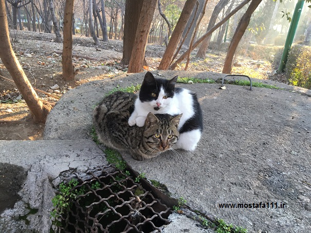 مادرها، در میان انسان ها، خود را سکوی خوشبختی و رشد بچه های خود می کنند، این در اجتماع به کرات می توان دید، که انگار در مورد حیوانات هم صدق می کند، در هوای این روزهای تهران که به چند درجه زیر صفر هم رسیده، این گربه مادر از تن خود سکو ساخته تا، پاهای بچه اش روی سیمان های سرد نباشد، و گرمای تن او را حس کند.