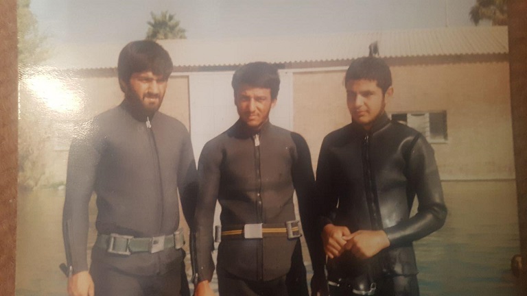 شهید حسن گلشنی - در لباس قواصی - سد دز - آموزش قواصی نفر سمت چپ