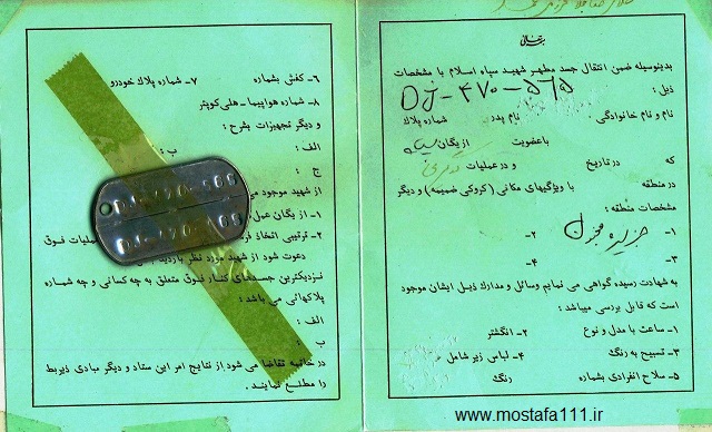 با این پلاک باقی مانده جسد پاک این شهید غواص را از بین آب و خاک جزیره مجنون یافتند