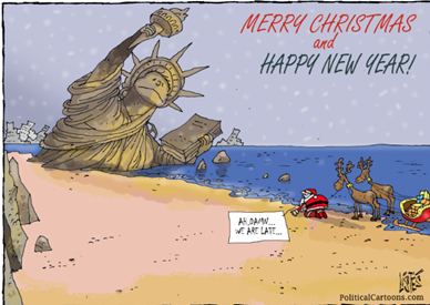 غرق شدن مجسمه آزادی در ساحل امریکا در آستانه سال نو و کریسمس