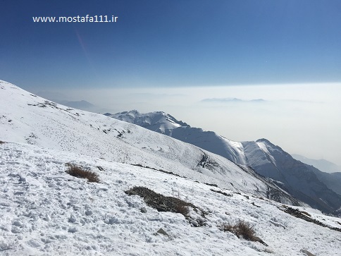 کلکچال از روی یال شیرپلا و تهران غرق در مه و آاودگی