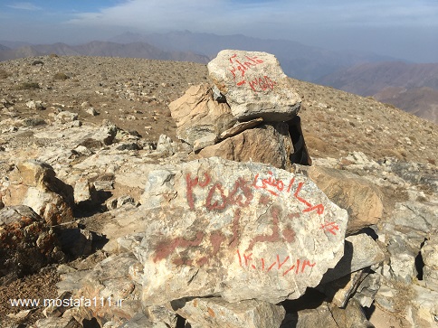 تابلو قله آویر را کنده و برده اند، جایش همنوردان با سنگچین تابلو ساخته اند