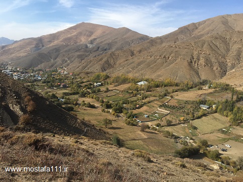 عکس از روی یال فرود، از سمت شرقی دهکده دونا و باغ های حاشیه آن