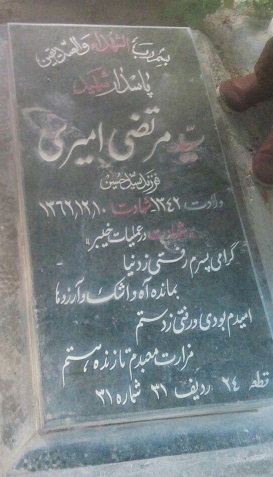 1- شهید سید مرتضی امیری فرزند آقا سید حسین و برادر کوچکتر سردار رشید این آب و خاک شهید سید مجتبی امیری (http://mostafa111.ir/neghashteha/shohada/827.html) می باشند که ایشان نیز بهشت زهرای تهران را به پیکر پاک خود منور کرده اند (از ردیف و قطعه ی مزارش اگر اطلاع دارید برایم بنویسید).