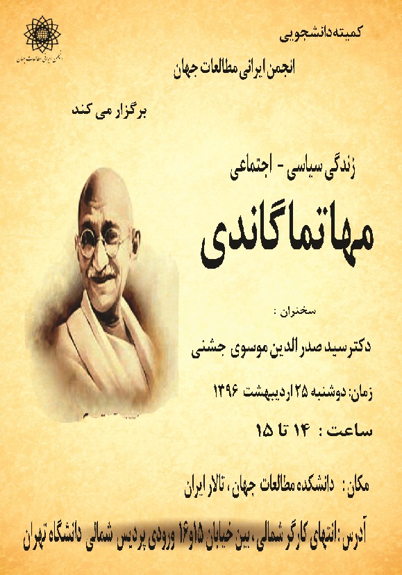 ولی نه، او هرگز پای به سرزمین برادران آریایی اش در ایران نگذاشت، ولی پیشقراولان فرهنگ ایرانی همچون خواجه معین الدین چشتی، خواجه نظام الدین اولیا، میر سید علی همدانی و بزرگانی از این دست سال ها قبل سفره حکمت و فلسفه پارس را بر قند پارسی سوار و به بنگاله برده بودند، و اینک فرزندان سرزمین بهار را نیز از حکمت و تحمل و مدارای خود سیراب کرده بودند، و لذا گاندی به ایران نیامده، پیام بزرگان پارس را خوب در دسترس داشت و خوب آنرا درک کرد و در جریان مبارزاتش ساری و جاری کرد و با تفکر و عمل "دیگر خواهانه" و تحمل و مدارا و دوری از خشونت خود و انقلابش را جاودانه کرد.