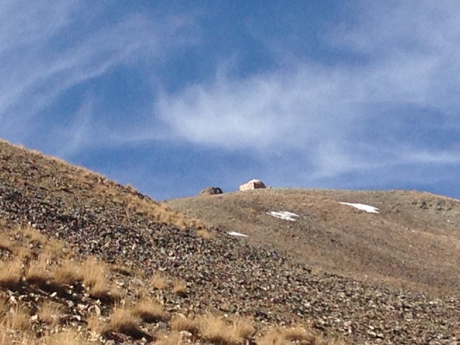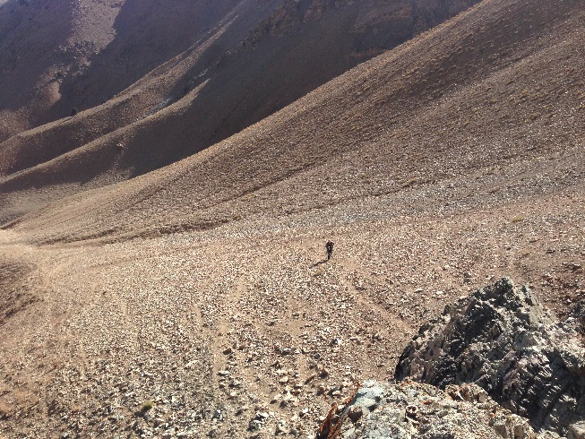 ساعت یک و سی و نه دقیقه (01/39) بعد از ظهر بود که قله شکوهمند توچال خود را دوباره از پس شیب تند حایل بین ما و او خود را نشان داد و قوت قلب گرفتیم، اما در این لحظات انتظار پایان شیب و رسیدن به خط الراس خود را به تو تحمیل می کند، اما هر چه می روی، پایانی بر مسیر نیست و در حالی که انرژی در پاهایت حس نمی کنی، چاره ایی جز ادامه نداری، انگار ماندن برابر است با مردن، باید به هر ترتیب است ادامه داد و این بسیار ضروری است، دیگر استراحت های چند لحظه ایی هم اثری ندارد، و چند قدم که می روی دوباره به خستگی قبل از استراحت بر می گردی و... شرایط دلهره آوری است. اگر به این شرایط باد و سرما هم اضافه شود احتمال بازماندن هست، اما خوشبختانه اینجا در پناه کوه هستی و باد ها کمتر تو را می یابند. شیب سنگلاخی است و حضور طولانی مدت یخچال های پای قله توچال باعث شده که یخ، بسیاری از سنگ ها را خرد کند و سنگلاخی از خود بجای بگذارد