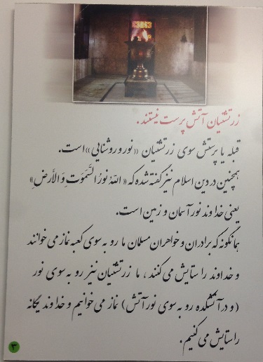 "زرتشتیان آتش پرست نیستند. قبله و یا پرستش سوی زرتشتیان "نور و روشنایی" است. همچنین که در دین اسلام نیز گفته شده که "الله نور السموات و الارض" یعنی خداوند نور آسمان و زمین است. همانگونه که برادران و خواهران مسلمان ما رو به سوی کعبه نماز می خوانند، و خداوند را ستایش می کنند، ما زرتشتیان نیز رو به سوی نور (و در آتشکده رو به سوی نور آتش) نماز می خوانیم و خداوند یگانه را ستایش می کنیم."