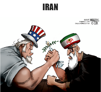 کاریکاتور نشریه امریکایی پیرامون همآوردیهای جاری بین ایران و امریکا