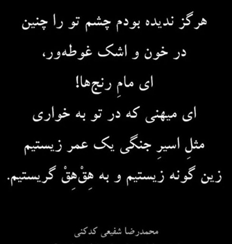 [3] - برگرفته از متنی ادبی، از ادبیات مظلومانه مردم افغانستان، که در پی کشتار طالبان از غیر پشتو زبانان در این کشور، از سوی این مردم مظلوم گفته آمد.