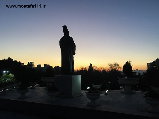 مجسمه امیرکبیر، رو به شرق، در آستانه طلوع خورشید ایران در شرق