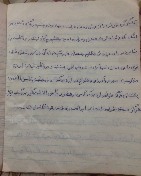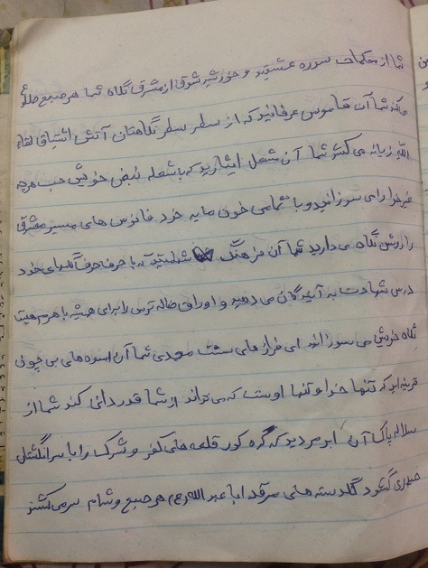آن موقع ها سال دوم حضورم در جنگ را آغاز کرده، و وارد 16 سالگی شده بودم، حسن ختام دفتر یادداشت های آموزشی ام، مطلبی است، که تحت عنوان "ای محکمات سوره عشق" درباره بسیج نگاشته ام، که با توجه به مناسبت این روزها، یعنی سالروز تشکیل بسیج عینا می آوردم :